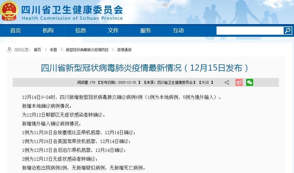 月23日0-24时,四川新增3例境外输入确诊病例(均由无症状感染者转归),新增3例境外输入无症状感染者,无新增本土病例,全省所有县(市、区)均为低风险地区。新增确诊病例情况数量与来源:新增3例确诊病例均为境外输入,且为12月22日无症状感染者转确诊,无新增本土确诊病例。